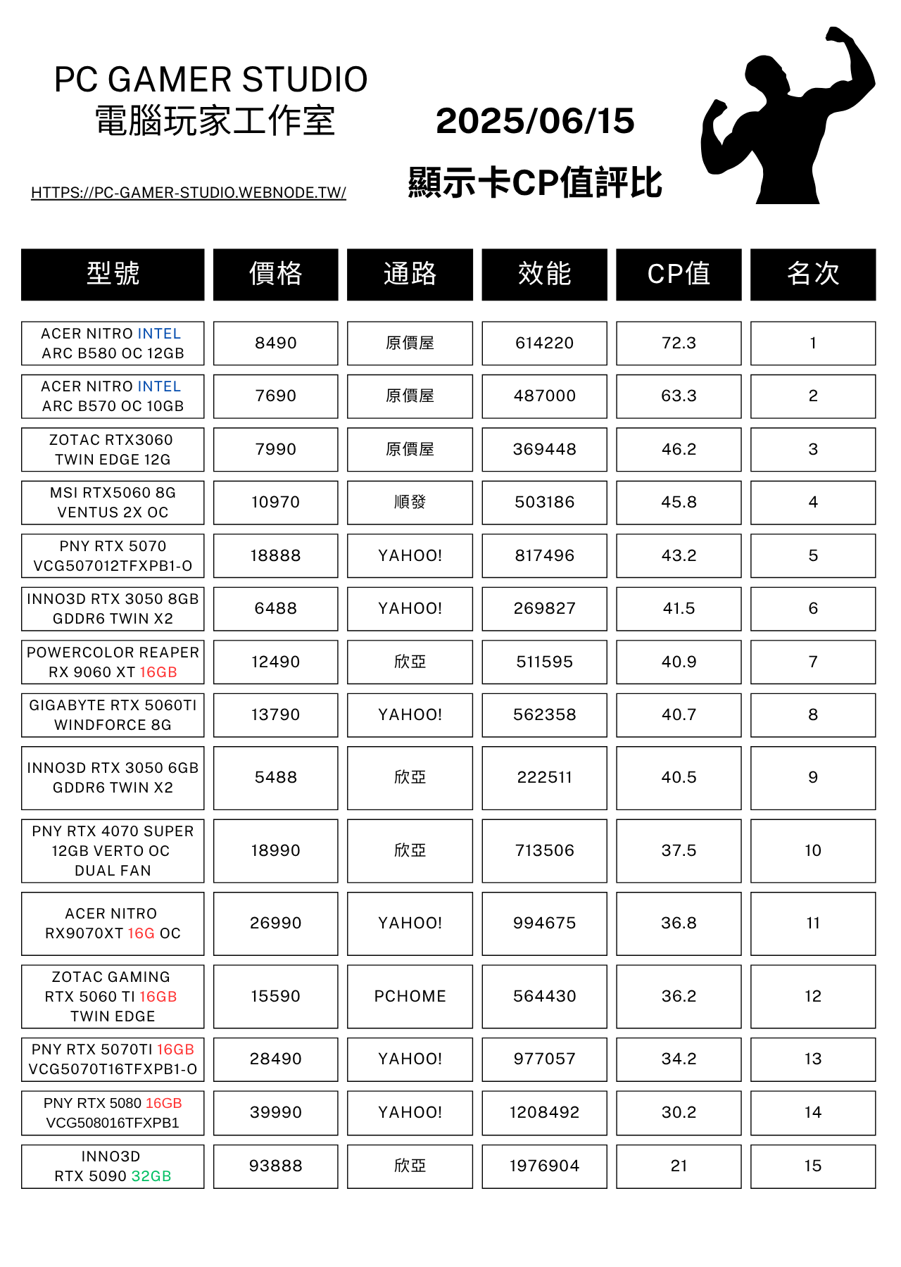 2.ARC的加入與3060稍微漲價,排名有著些許變化