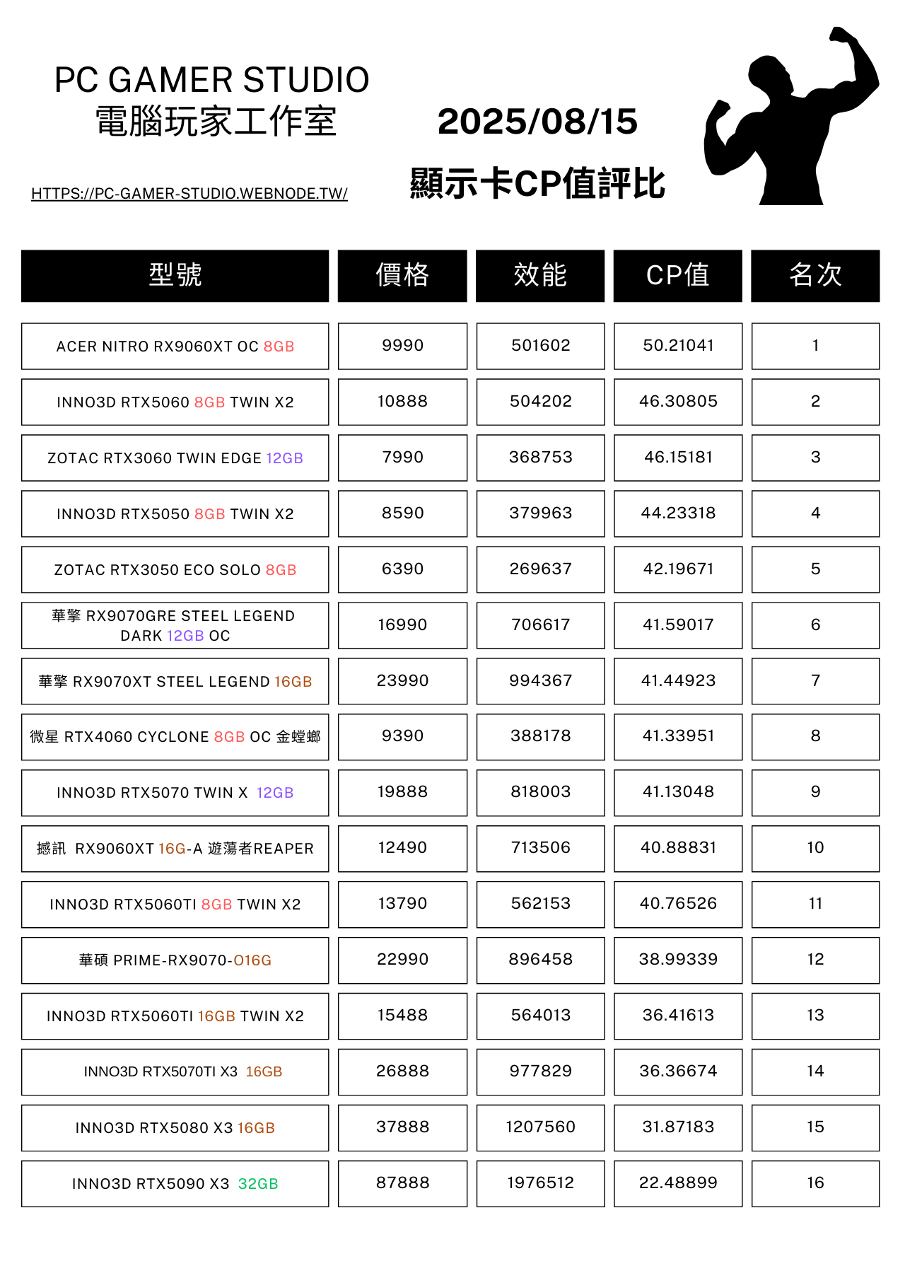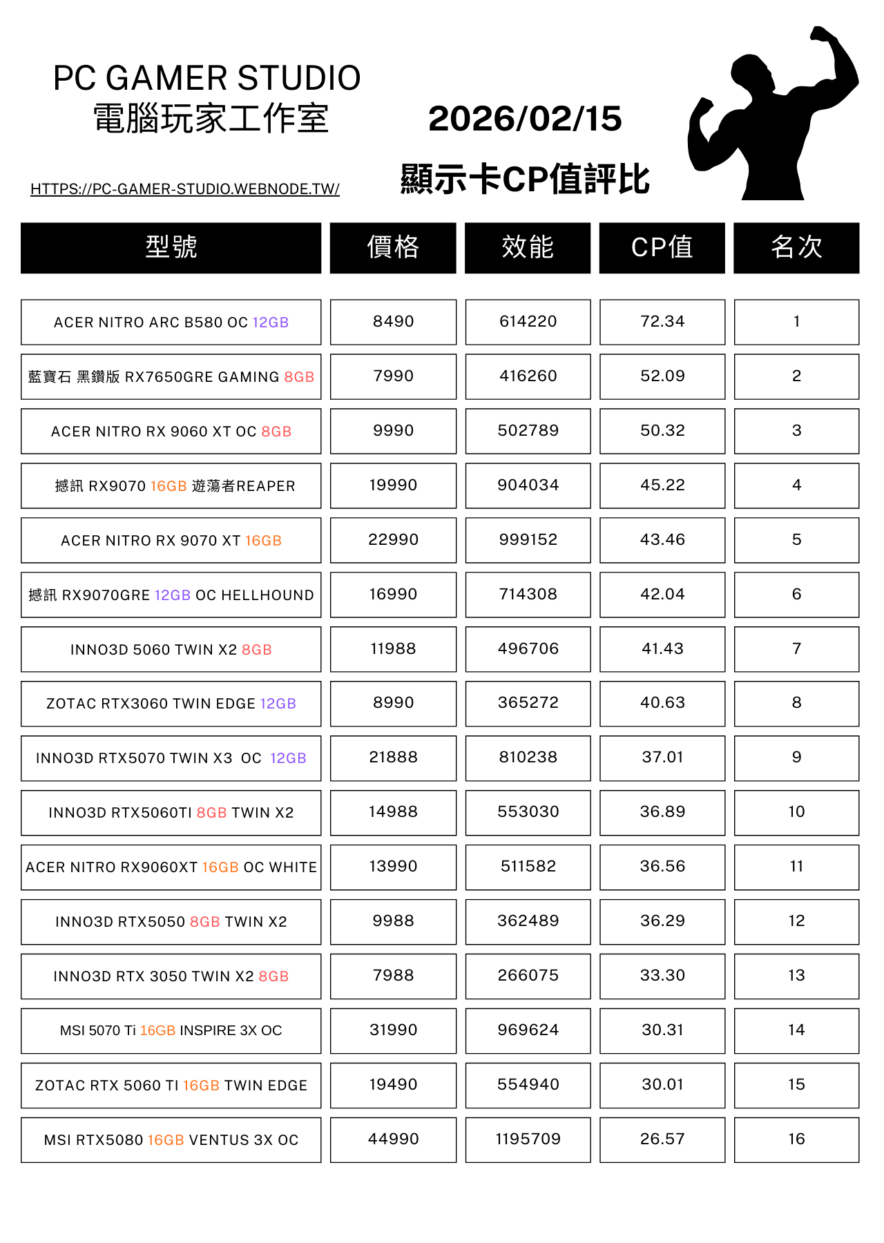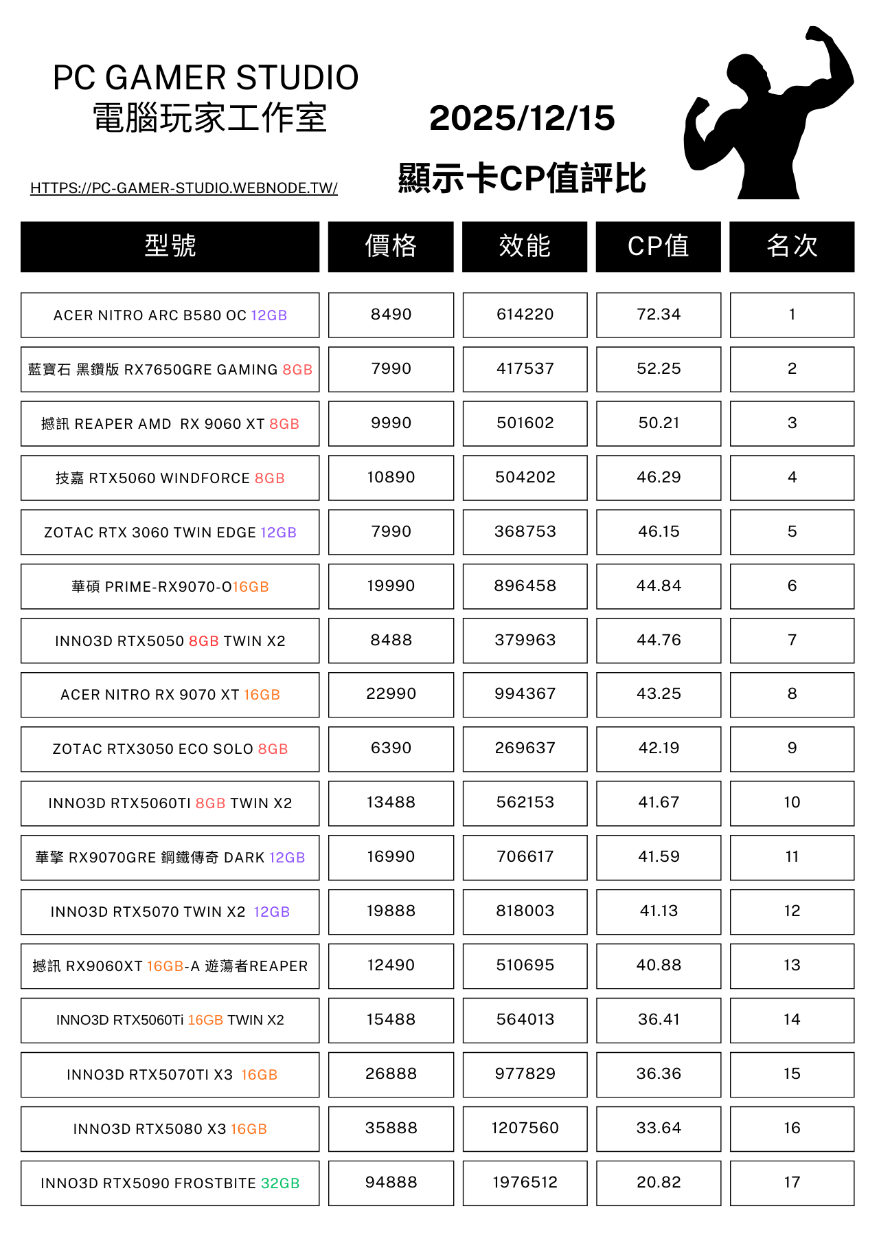 只取部份(性價比)最高顯示卡,少數不列入評比
