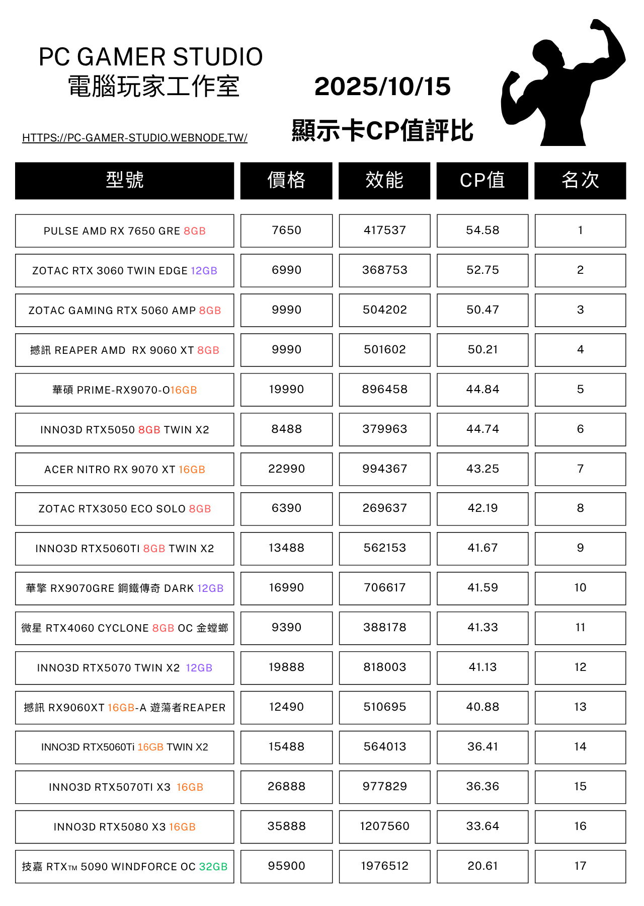 3.如果8GB顯存是你可以接受的容量,那7650 GRE 8GB 是現在最高CP值的選擇。