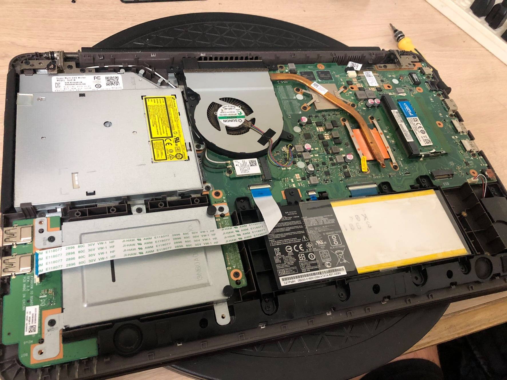 這是一台2016的筆電,但電池已經蓄電量不足,筆電的電池跟手機一樣,久了都是得更換的,以免膨脹導致外殼變形甚至面板破碎,那損失可就大了。
