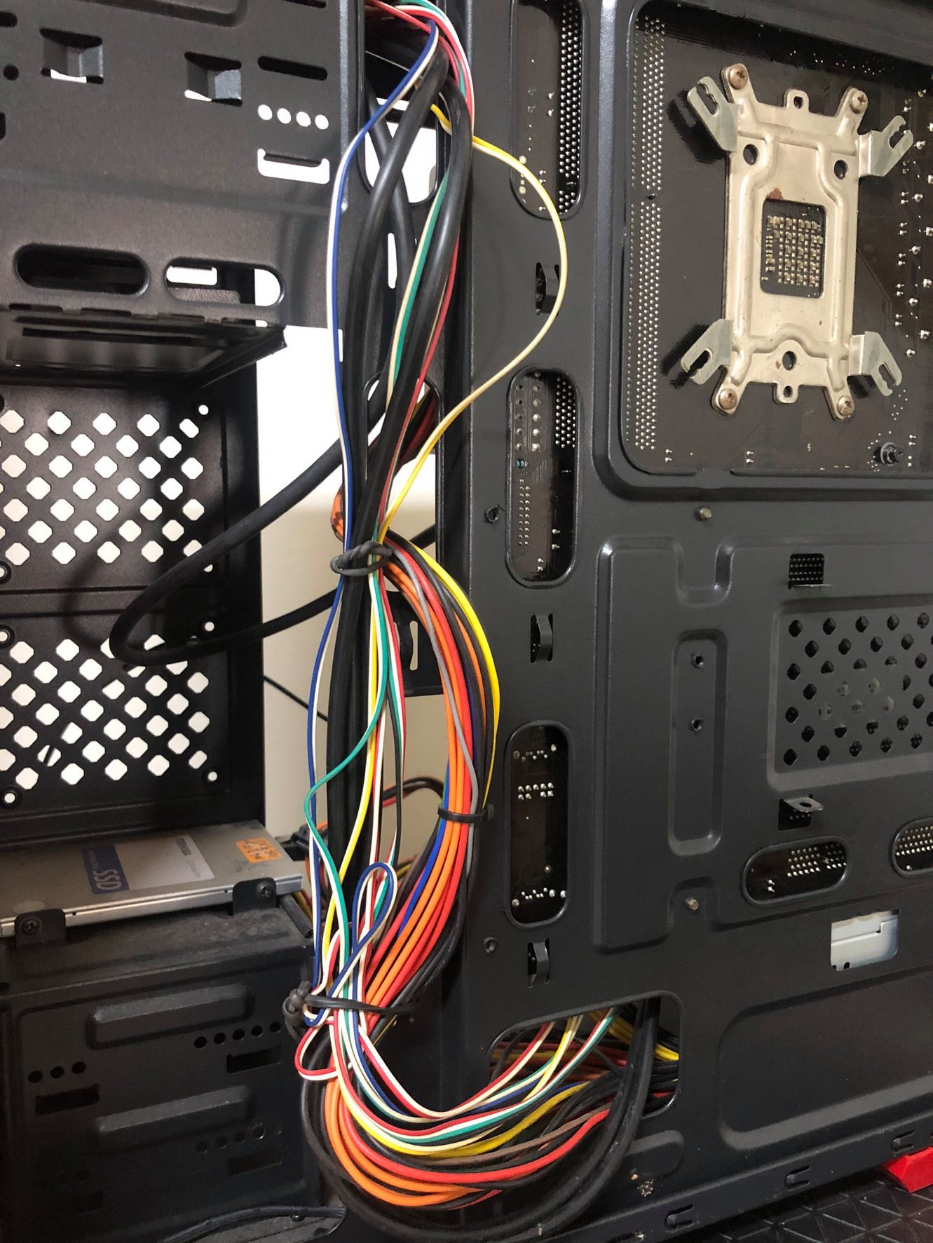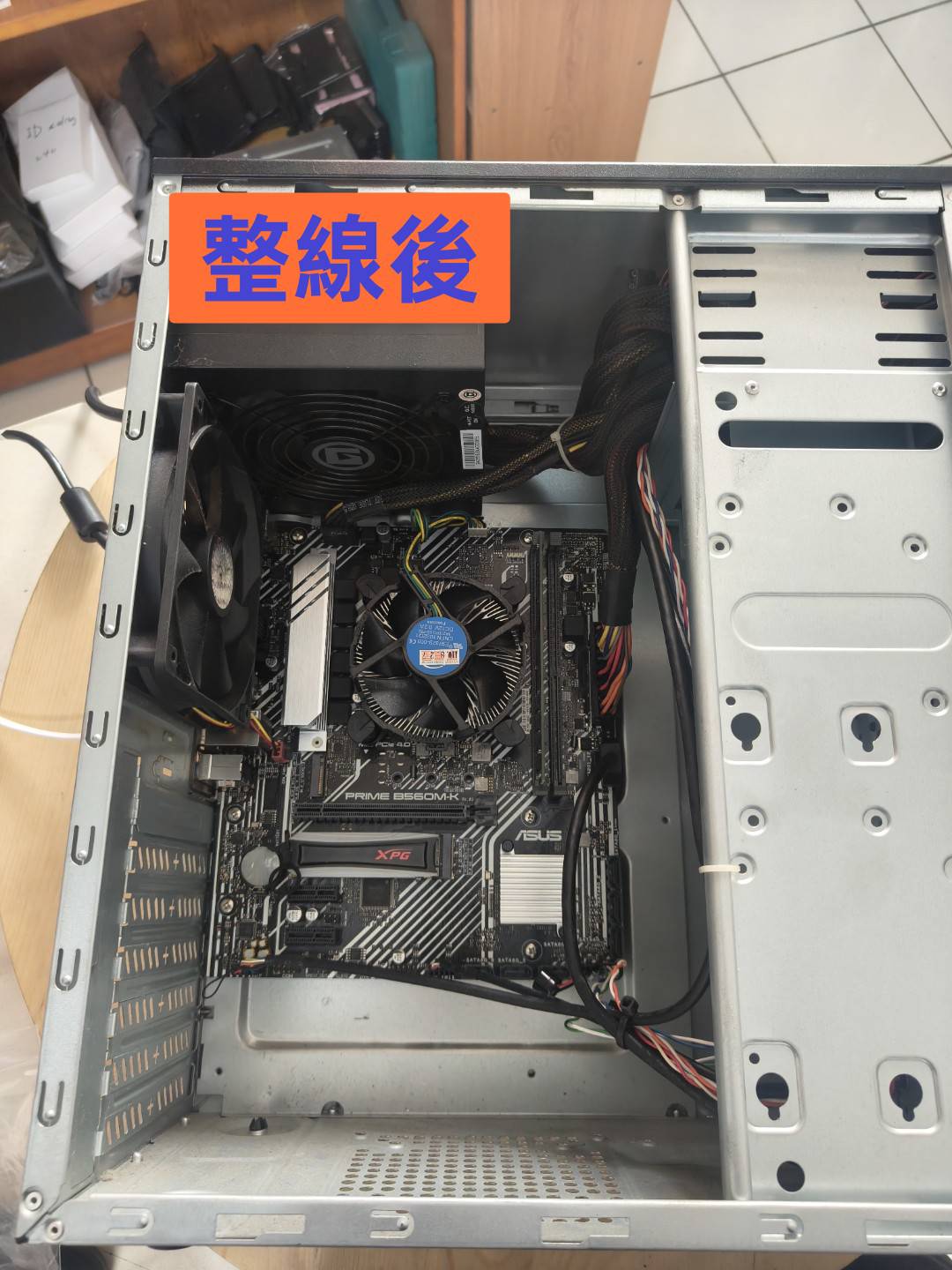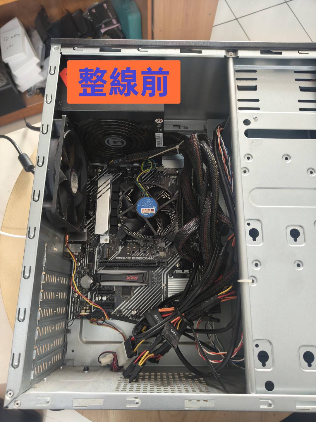 已經很久沒有遇到這種老舊的機殼了,現在新式機殼的線材都可以藏,反而老機殼更能展示細心,原店家連束帶都不剪…實在讓小弟看不下去,整線整起來!!!