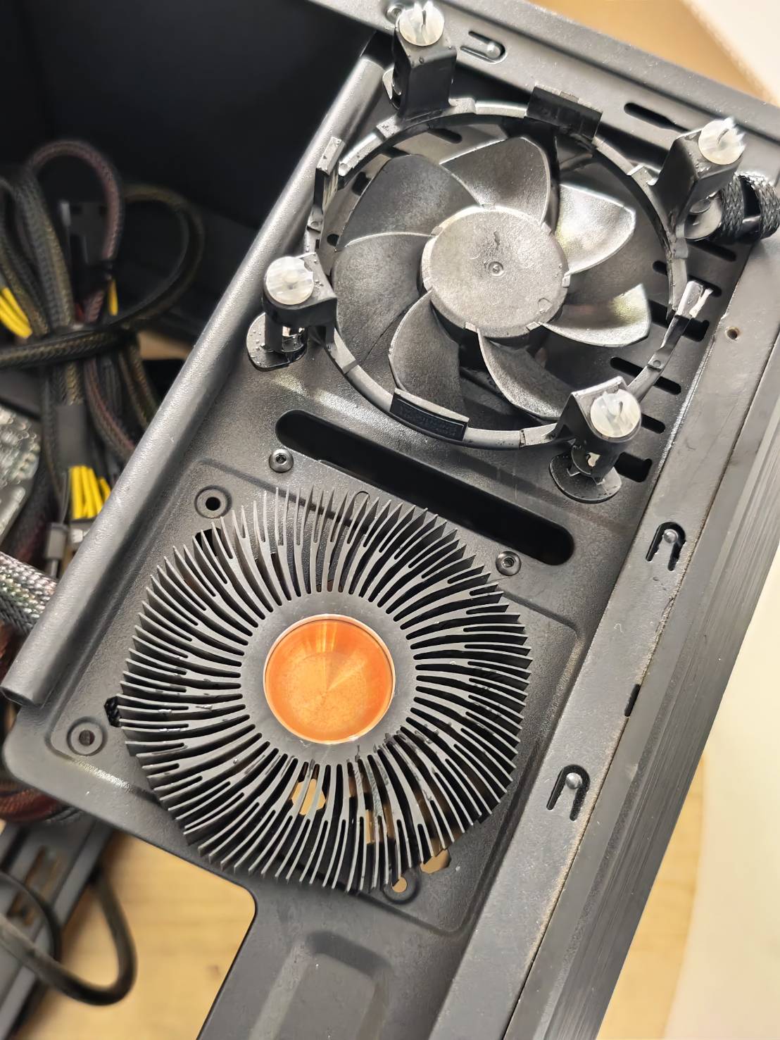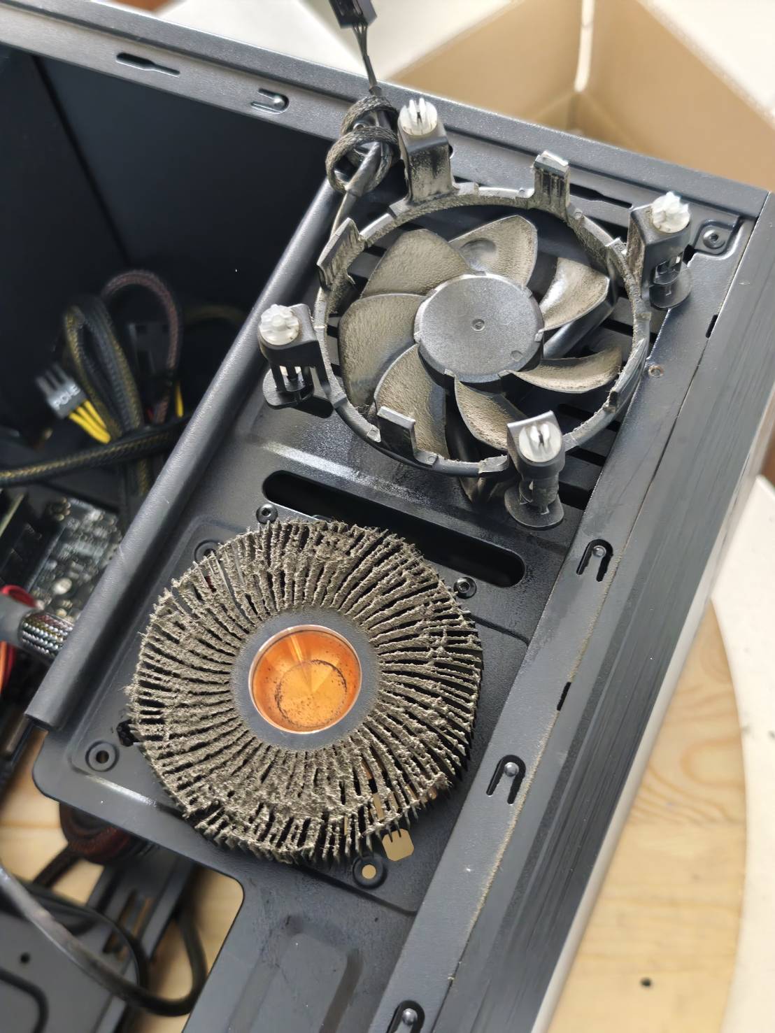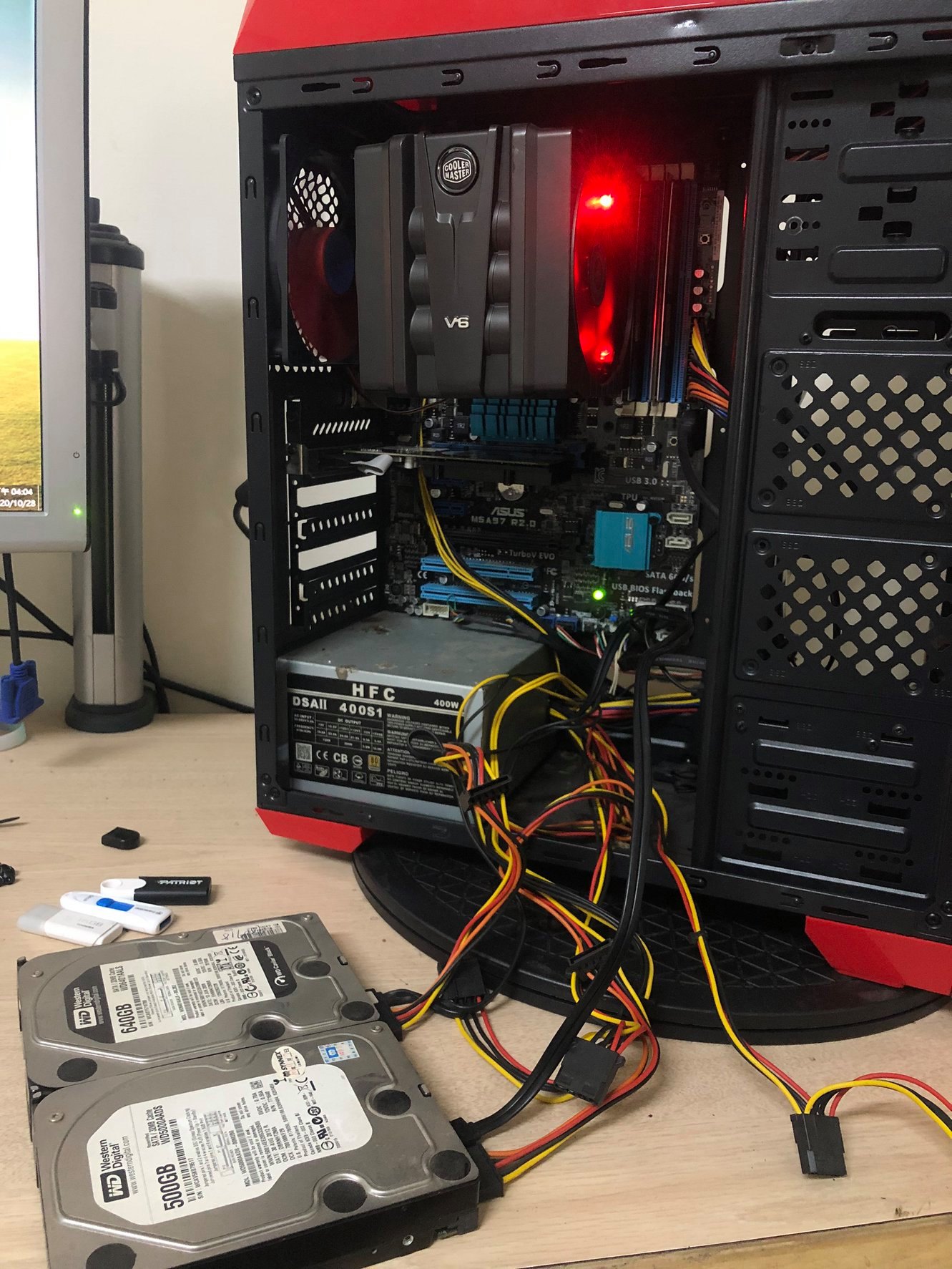 已經很久沒有遇到這種老舊的機殼了,現在新式機殼的線材都可以藏,反而老機殼更能展示細心,原店家連束帶都不剪…實在讓小弟看不下去,整線整起來!!!